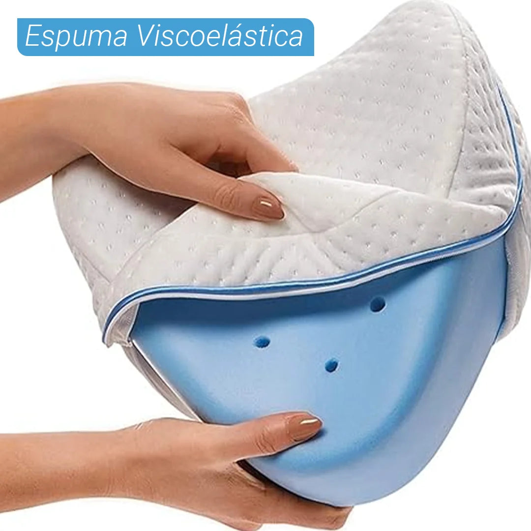 Gracias a su diseño anatómico, esta almohada mantiene tus piernas, caderas y columna perfectamente alineadas durante el sueño.